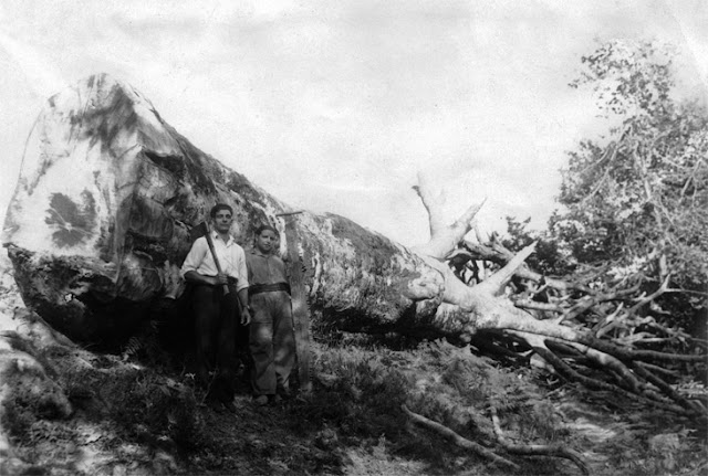 3- Leñadores junto a al tronco de Artagoitiko pague recién derribado. Fotografía: © Euskal Museoa Bilbao Museo Vasco |